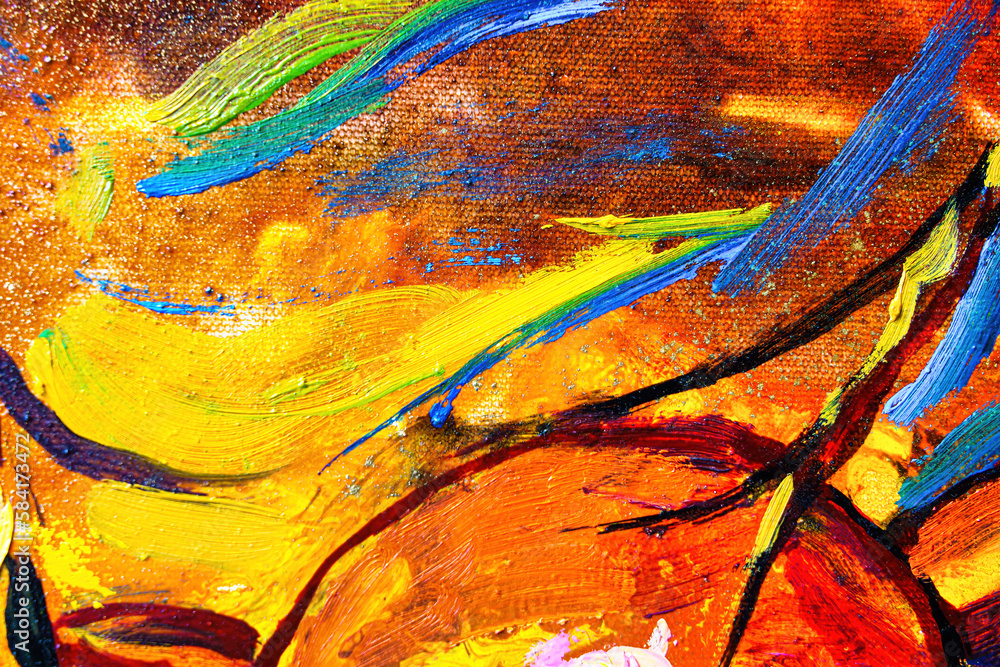 Colorful abstract oil painting art background. Texture of canvas and oil.