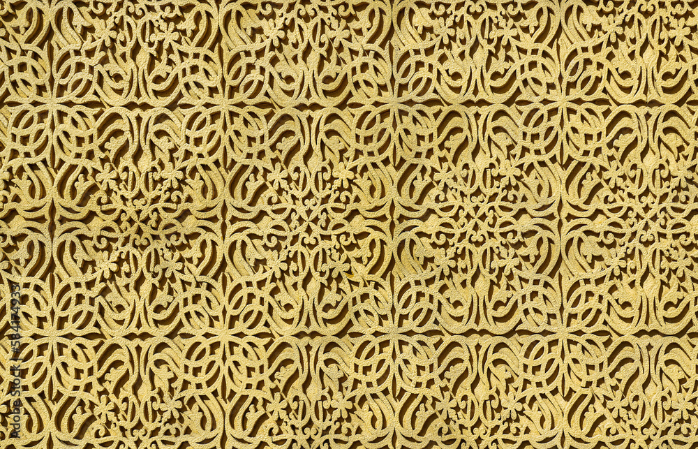 Geometric traditional Islamic ornament. Fragment of a concrete mosaic.