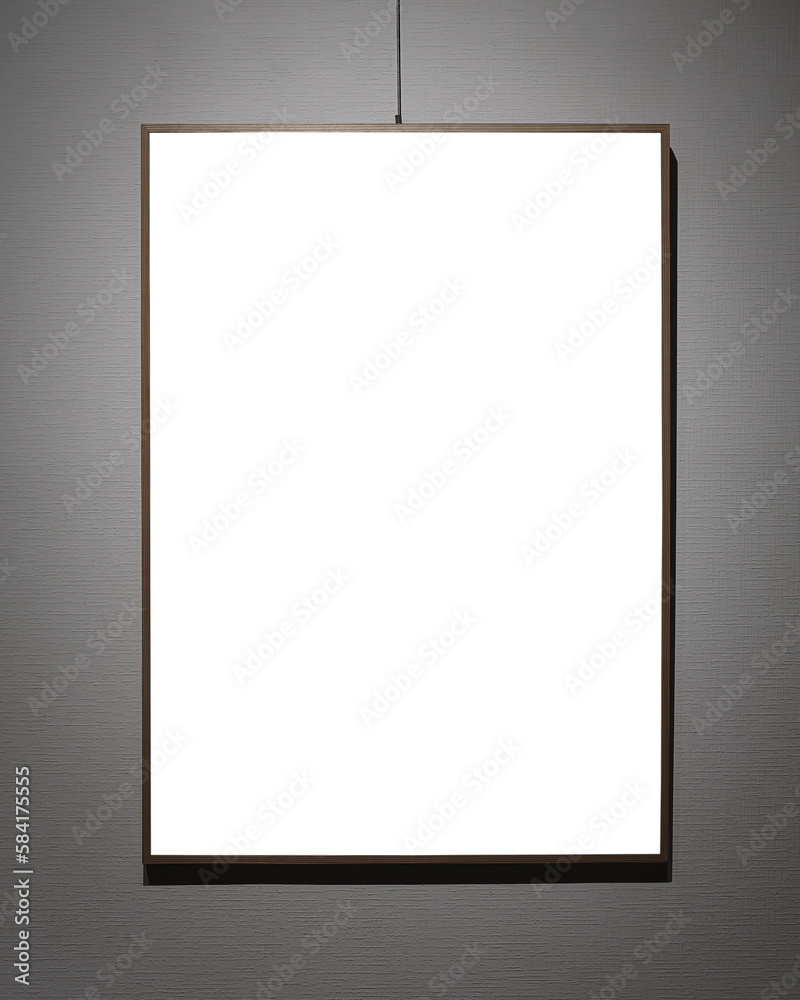 Picture frames with copy space for text hanging on the wall with wallpaper. Mockup for design.