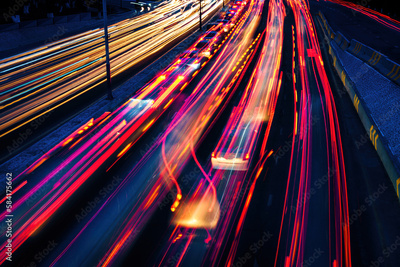 Car traffic light at night city.