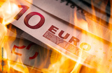 euro banknotes burning