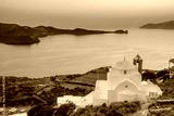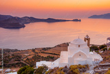 Panagia Thalassitra church and Plaka village view at sunset, Milos island, Cyclades, Greece