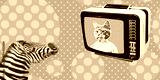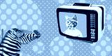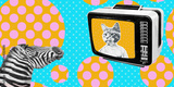 Contemporary digital collage art. Modern trippy design. Zebra and retro news