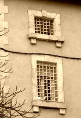 Deatil of the prison, windows with prison bars. Digne les Bains, Alpes de Haute Provence, France.
