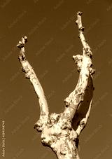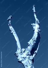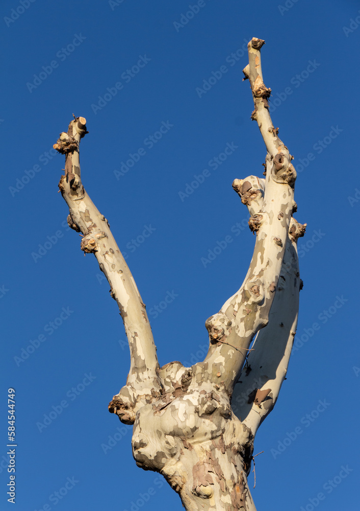Pruned plane tree in winter with a blue sky background. Digne les Bains, Alpes de Haute Provence, France.