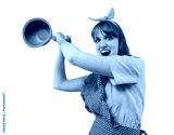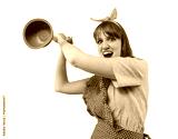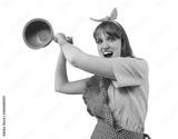 Funny retro housewife hitting someone with a plunger
