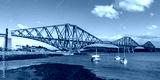 The mighty Forth rail bridge spreading across the Firth of Forth connecting north and south Queensferry. Taken from North Queensferry on A bright summer's day.