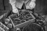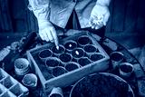 Planting pumpkin seeds for germination into biodegradable peat pots. Spring gardening and sowing