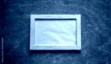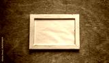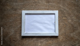 Photo of an empty wooden frame in the style of shabby chic on a wooden background.A clean white horizontal frame for placing the photo.