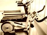 Sports equipment in Gym Exercising Fitness Running track and Aerobic spinning bikes
