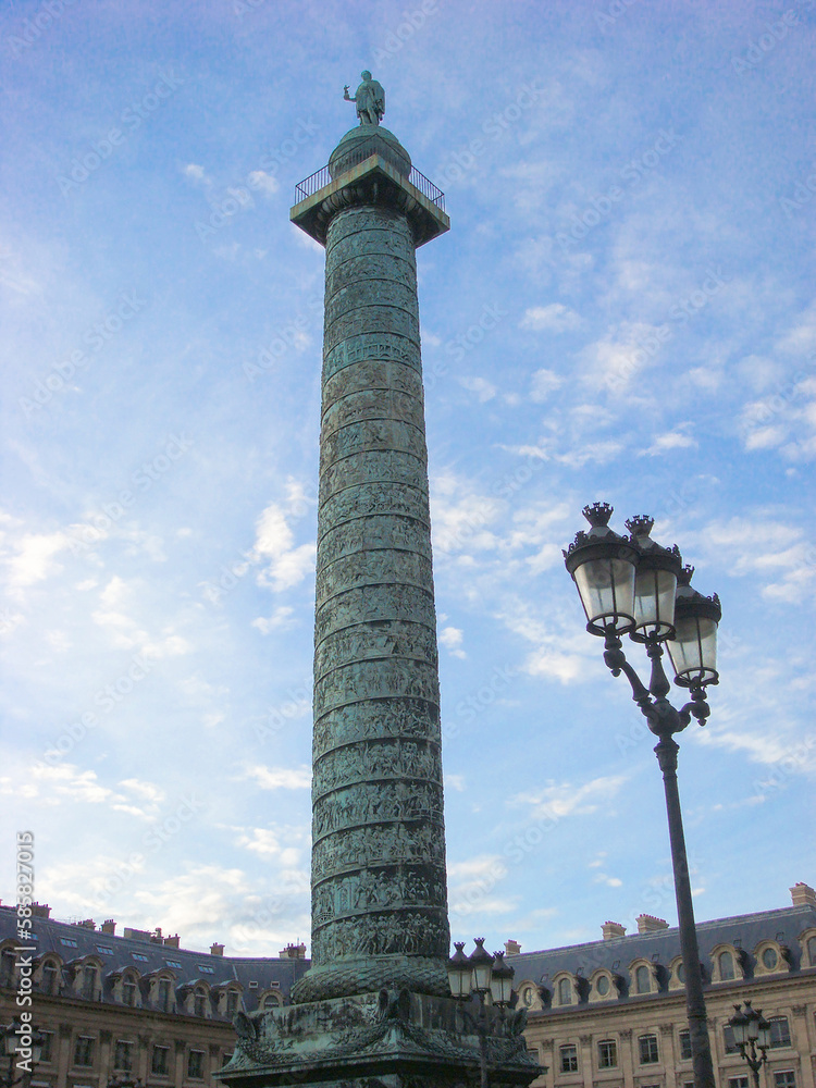 Beautiful view of the Vendome column. Close-up. Paris. France.