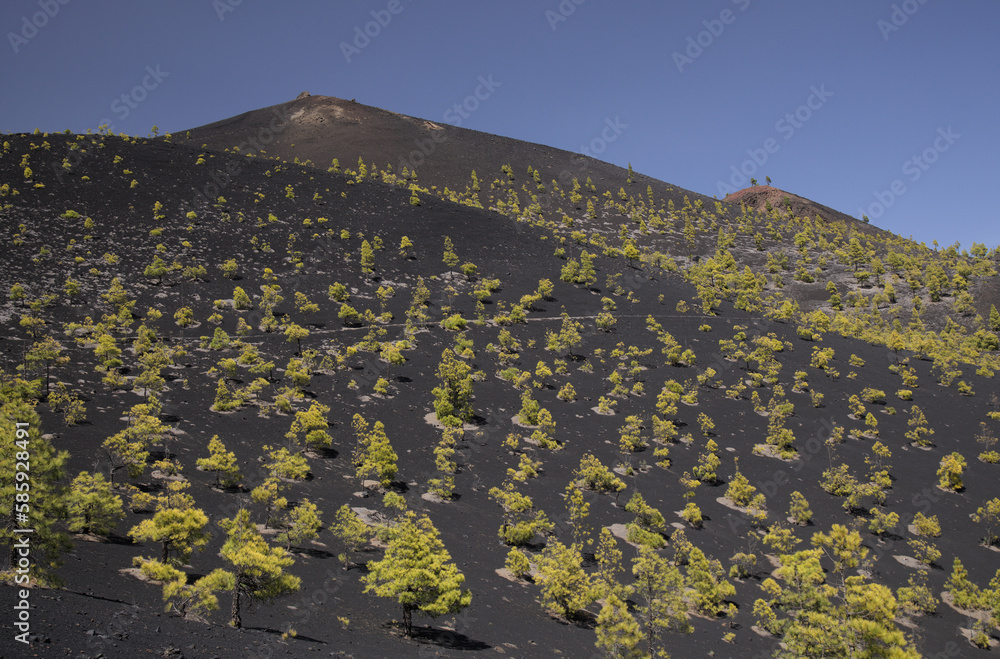 La Palma, landscapes along the long-range popular hiking route Ruta de Los Volcanes, southern part