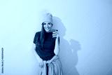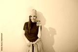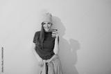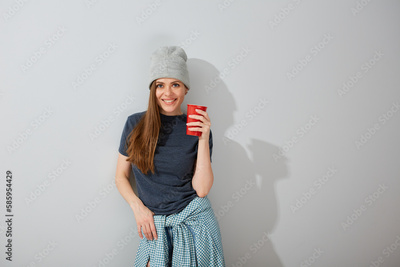 Teenager girl in beanie hat holding coffee isolated portrait.