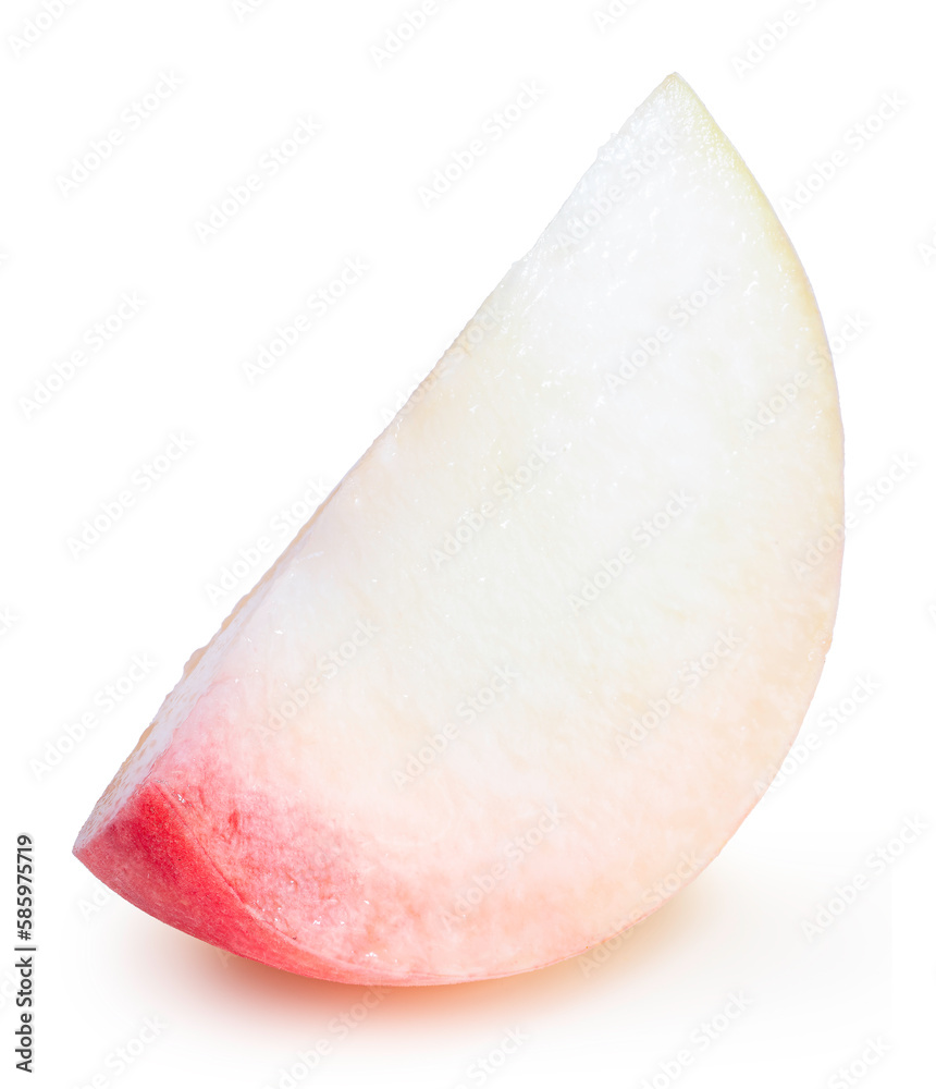 Yellow and Pink Peach fruit with leaf isolated on white background, Fresh White Peach on White Background With clipping path.