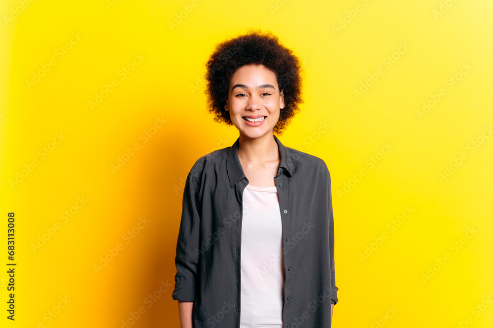 Healthy eating concept. Positive healthy slim african american young curly haired woman in a sportswear, standing at home in kitchen cutting vegetables while preparing fresh salad, smiling happily