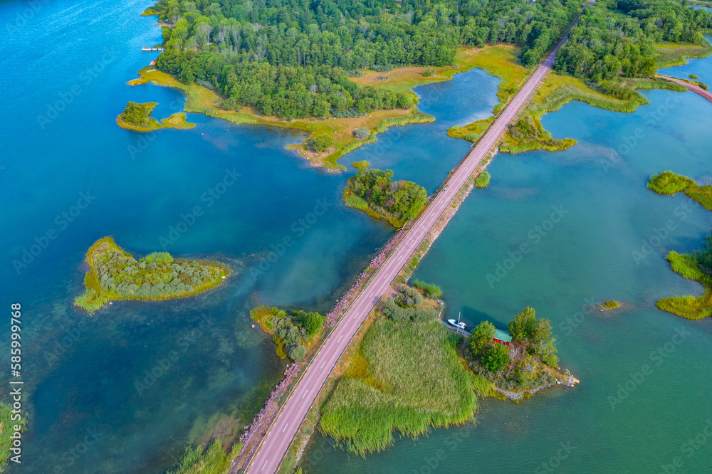 Road connecting remote islands at Aland archipelago in Finland
