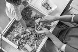 Cute male kid son and mother playing kinetic sand form early development educational game top view