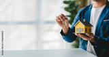 Real estate broker.Agents deliver sample houses to customers, mortgage contracts, loans, hire-purchase contracts and house sales. real estate concept