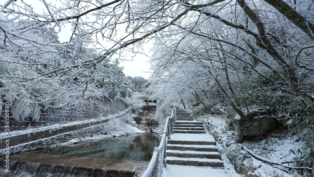 The beautiful frozen mountains view coverd by the white snow and ice in winter
