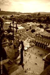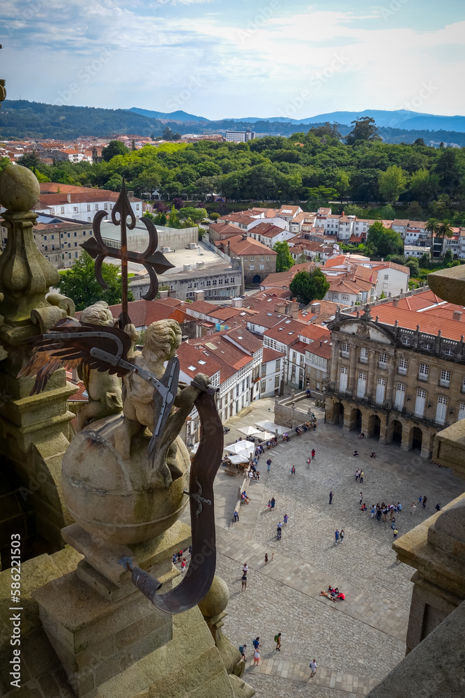 Obradoiro square view from Santiago de Compostela Cathedral, Galicia, Spain