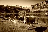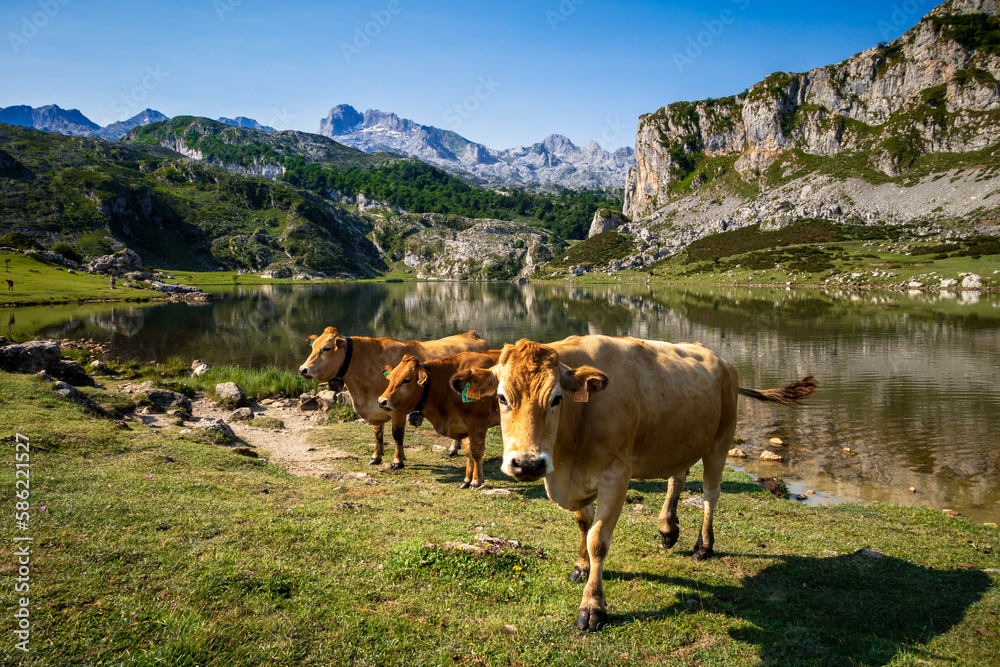 Cows around lake Ercina in Picos de Europa, Asturias, Spain