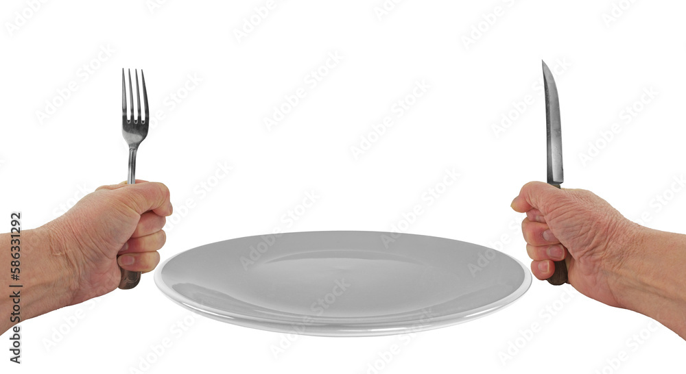 Dinner time with knife, fork and empty plate isolated on a transparent background