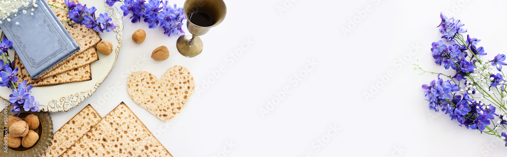 Pesah celebration concept (jewish Passover holiday) over isolated white background