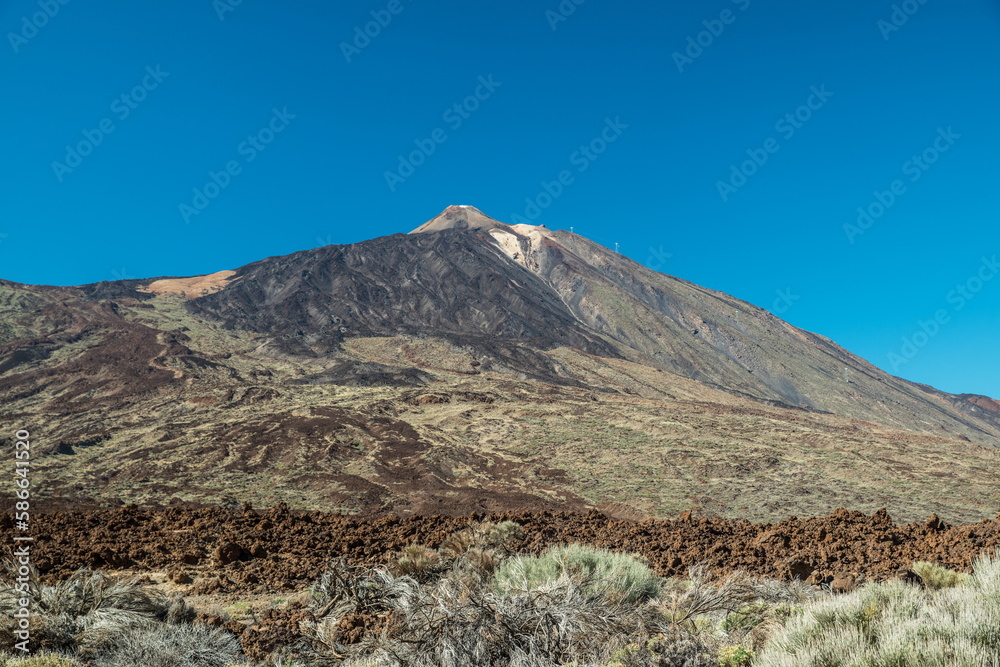 Unique landscape of Teide National Park and view of Teide Volcano peak. Tenerife Island.