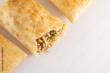 Brazilian Chicken and Corn Pastry (pastel de feira), Top View, with Copy Space