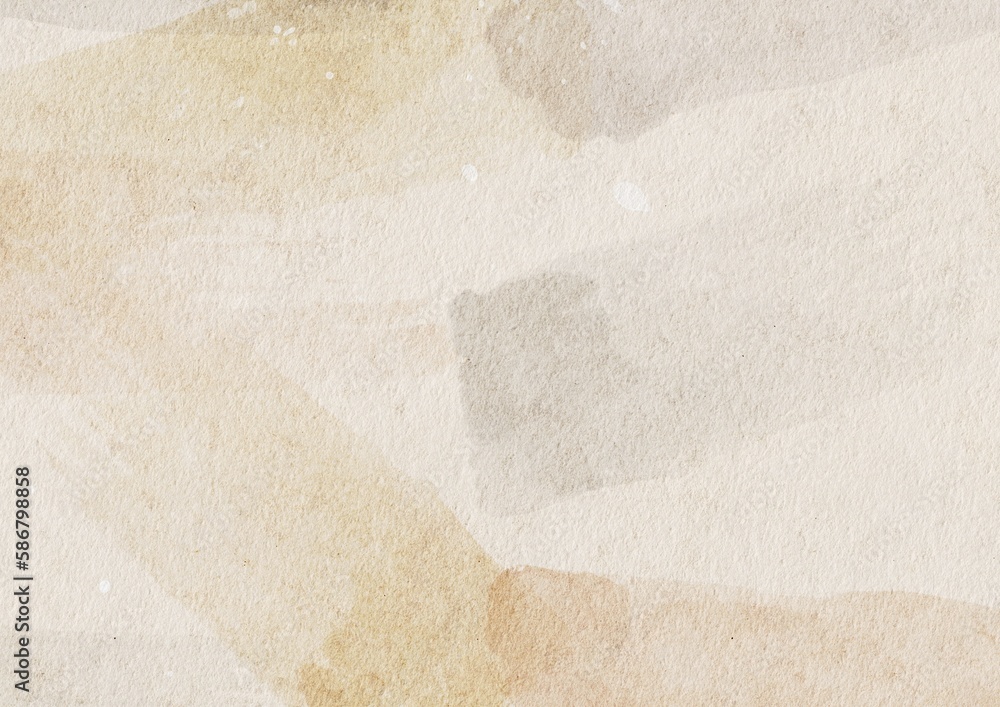 Abstract beige watercolor painting with grunge brush in earth tone color, watercolor paper texture background
