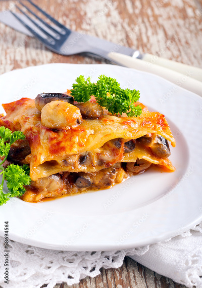mushroom lasagna on plate