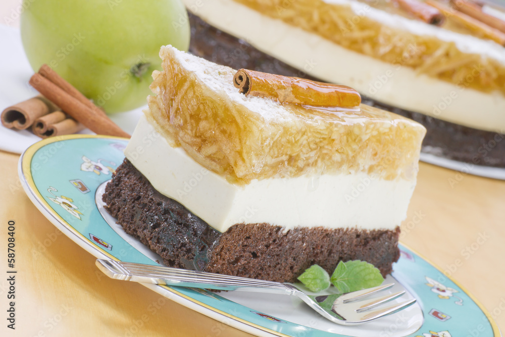 A piece of apple cake on a plate