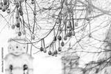 Easter tree with eggs. Many colorful painted easter egg on branch in sunlight with church, temple background