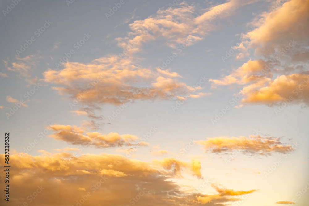 White clouds with yellow sunset light sky