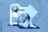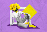 Creative vibe trend collage of bright young person with yellow daisy face enjoying spring time season day