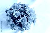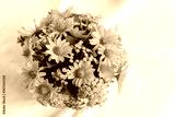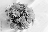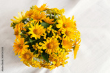 Happy mother's day, women's day or birthday pastel colors background. Floral minimalism greeting card. Bright yellow flowers in a round vase on a table with a white tablecloth