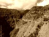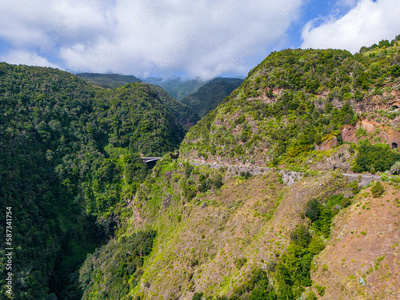 Volcanic green gorge and bridge, one of the main bridges in the northeast of La Palma, Canary Islands, Spain.
