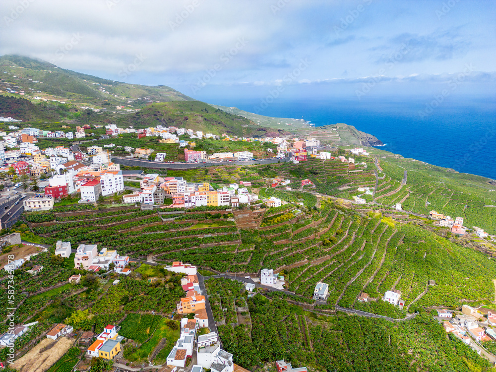 Aerial View at Green Volcanic Hills near Los Sauces at La Palma Island, Canary Islands, Spain.