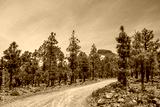 Pine trees growing in the mountains on lava soil in Tenerife, Canary Islands, Spain