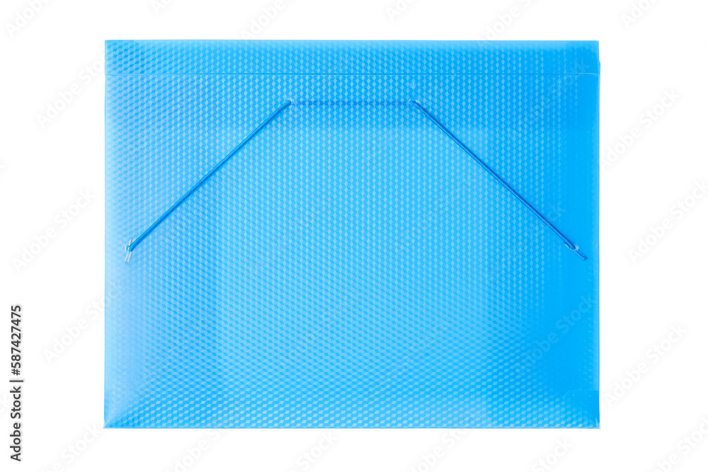 Blue plastic transparent folder with copy space on it close up. Isolate png with transparency
