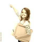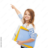 cute girl with folders pointing at virtual screen