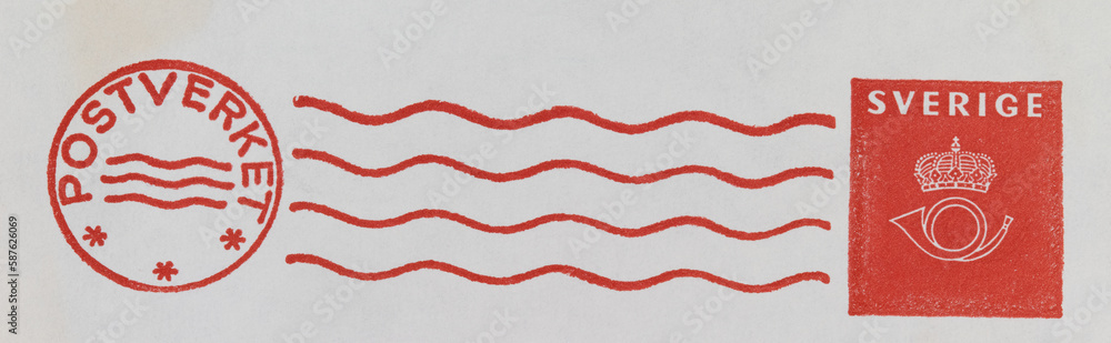 briefmarke stamp vintage retro alt old rot red schweden sverige sweden posthorn postverket welle wave papier paper postage post letter mail brief weiss white