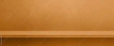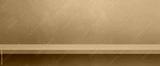 Empty shelf on a yellow ocher concrete wall. Background template. Horizontal banner mockup