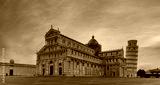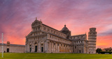 Landscape with Cathedral and the Leaning Tower of Pisa at sunset, Tuscany, Italy