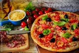 Pizza - Italian pizza with salami and black olives