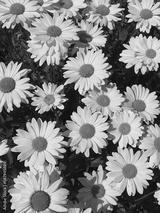 Closeup chamomile daisy flower buds pattern with sunlight shadows. Aesthetic summer flower background