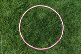 leisure games and sports equipment concept - close up of hula hoop on grass
