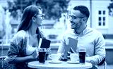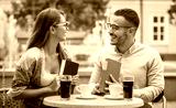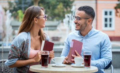 Campus life, student's love. Young couple learning together in the cafe. Education, love and tenderness, dating, romance, lifestyle concept