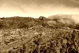 View to TF-375 road amoung the mountains near to small Arguayo town from the hill on sunny March day, Tenerife, Spain