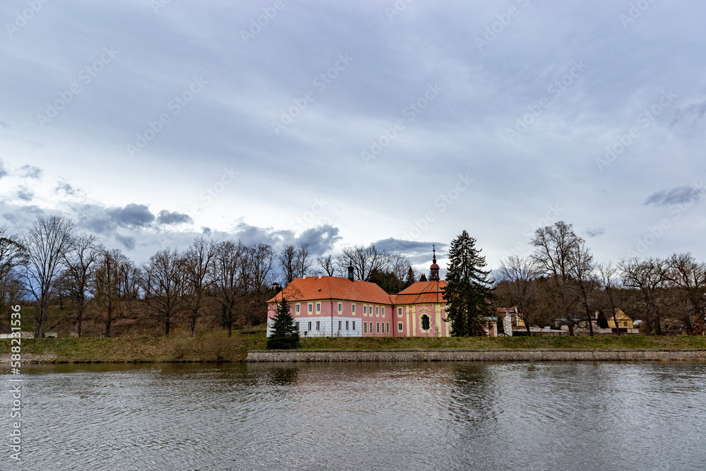 Castle Mitrowicz on a bank of Luznice river in South Czechia.